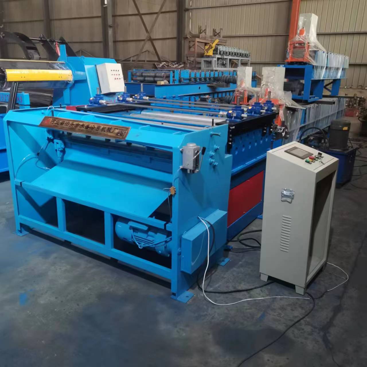 电动剪切开平机,对金属板材进行开卷校平剪切等一系列加工操作的机械。