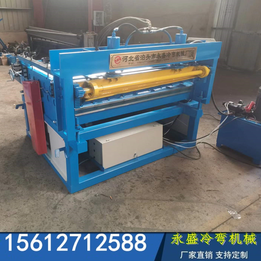 1.开平线工作时,送料机构处于送料状态,板材经设备整平后,通过中间输送、纠偏、定位进入定径装置。